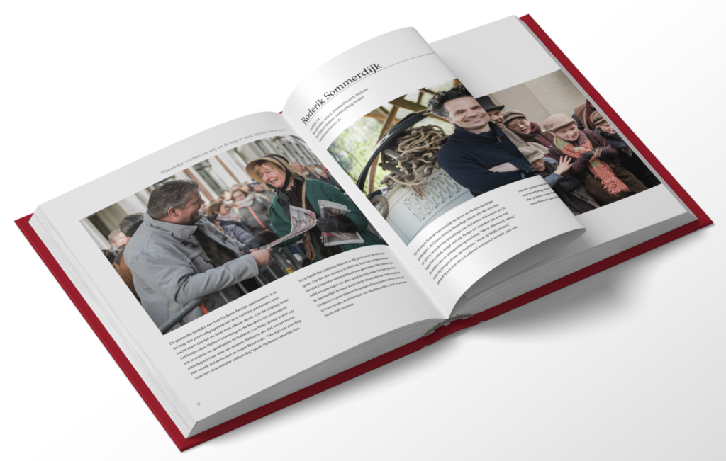 Steffie Schoemans en Arnold Joost legden verhalen achter 30 jaar Dickens in woord en beeld vast. Van bewoners tot acteurs, van koorleden tot mensen achter de schermen. Het resultaat is een indrukwekkend boek met prachtige beelden en bijzondere, ontroerende en grappige verhalen over de verbinding van mensen met een evenement als het Dickens Festijn. ‘Deventer ademt Dickens’ gaat over kind zijn in een grotemensendroom. Over beperkingen van het ouder worden, geluk en tegenslag, snoepgoed en punch en over kunst en creativiteit. Maar bovenal over heel veel plezier, saamhorigheid, betrokkenheid en passie.