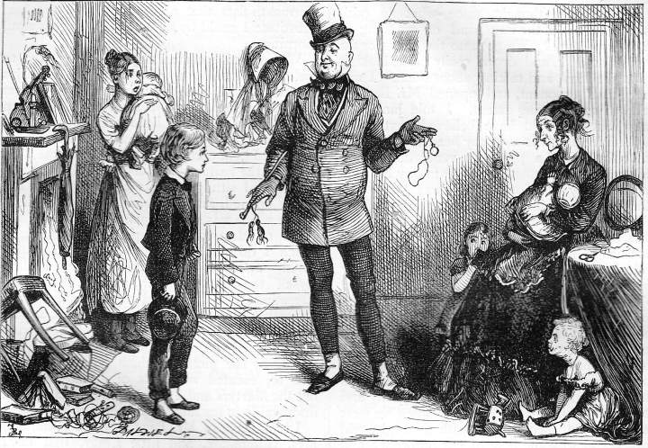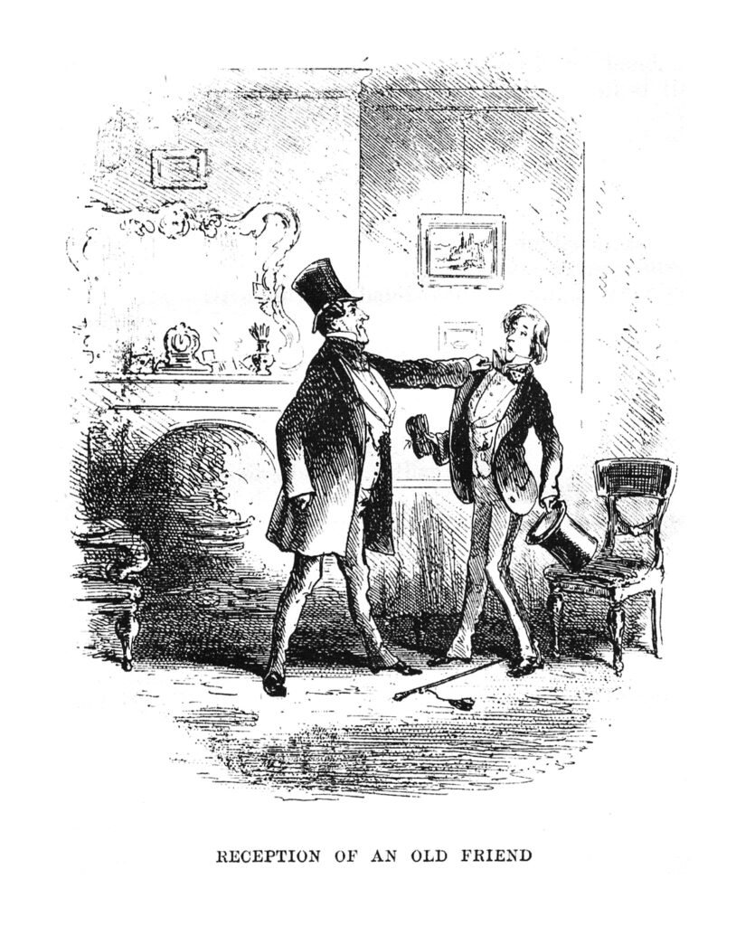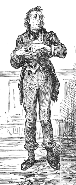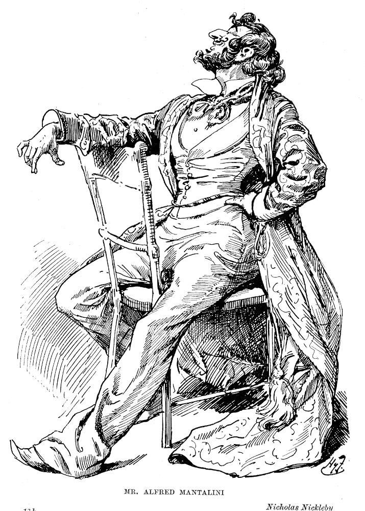 Mr Alfred Mantalini. Mr Mantalini heet eigenlijk Muntle, een schurk met een vlotte babbel. Hij verandert zijn naam in Mantalini, omdat dat deftiger klinkt. Hij geeft veel geld uit, geld dat hij met mooie praatjes van zijn vrouw lospeutert, totdat er niets meer over is en hij in de gevangenis terechtkomt.