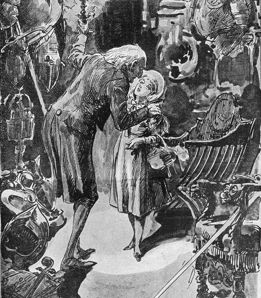 Little Nell en haar grootvader wonen in The Old Curiosity Shop. Grootvader heeft grote schulden bij Quilp. Als Quilp beslag laat leggen op de winkel, vluchten Little Nell en haar grootvader naar het platteland. Tijdens de avontuurlijke reis gaat de gezondheid van Little Nell steeds verder achteruit. Als ze denken in veiligheid te zijn, slaat het noodlot toe…