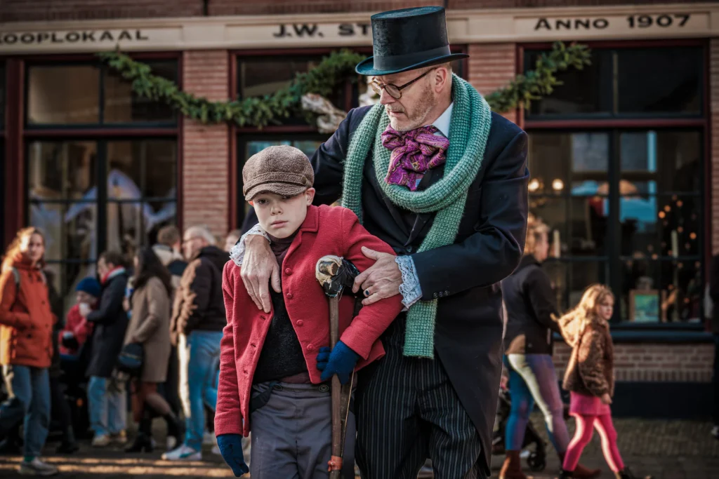 Er lopen weeskinderen rond, krantenjongens en –meisjes, kastanjeverkopers, schoorsteenvegers, gekken, zwervers en dronkaards. Maar gelukkig ook kantoorklerken, oude en jonge vrijsters, christmas carol singers, deftige notabelen en de bekende figuren uit de boeken van Dickens.